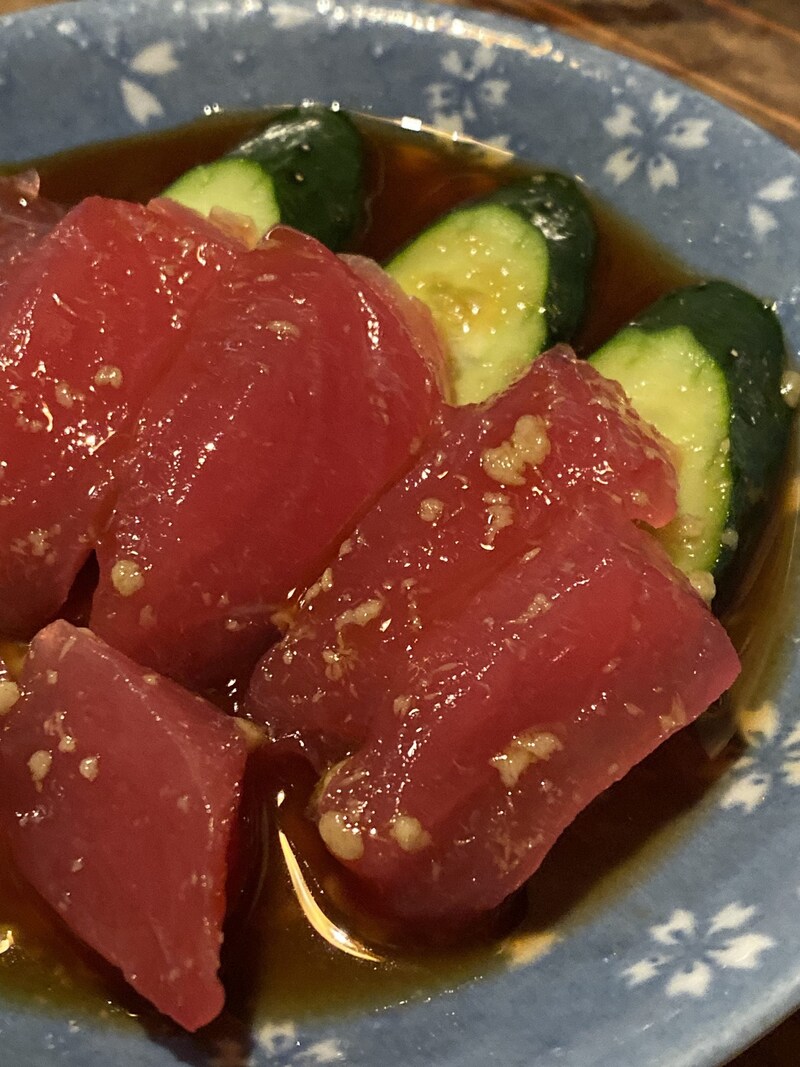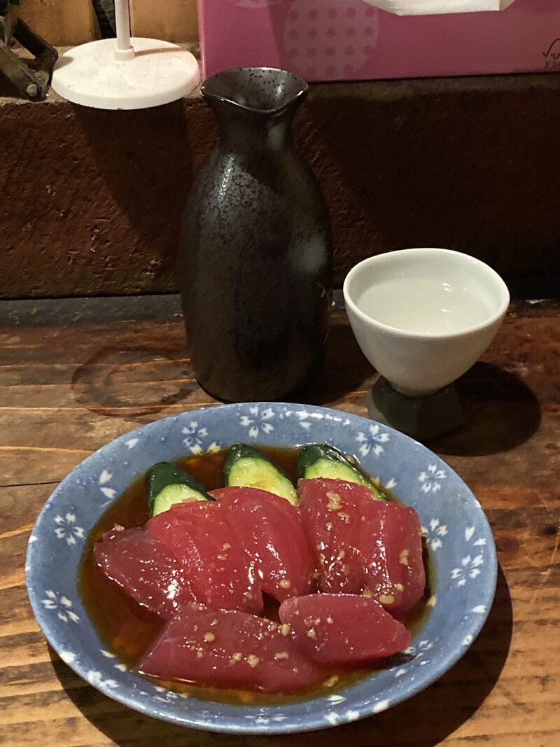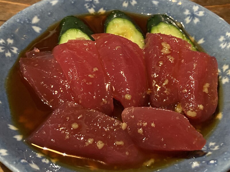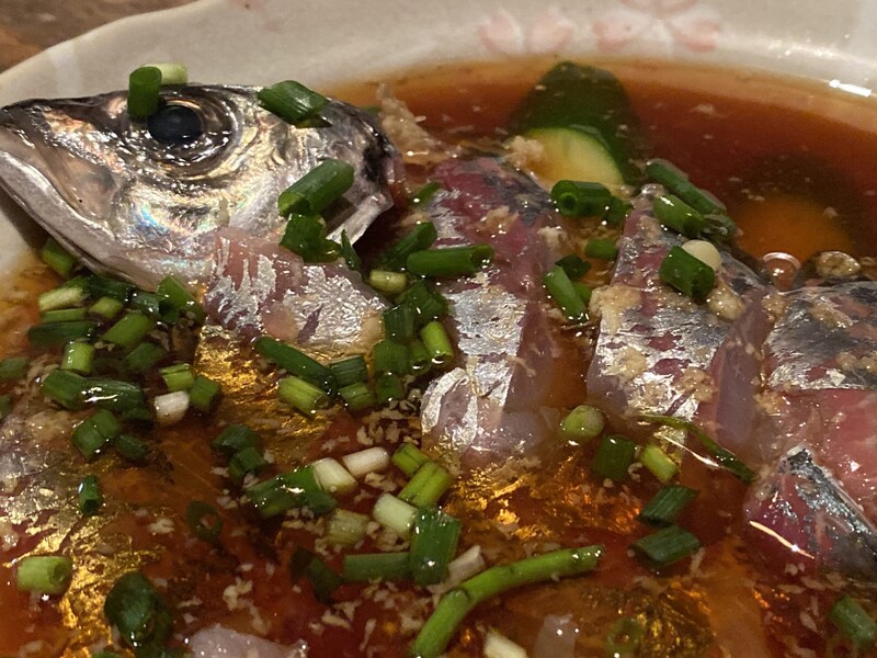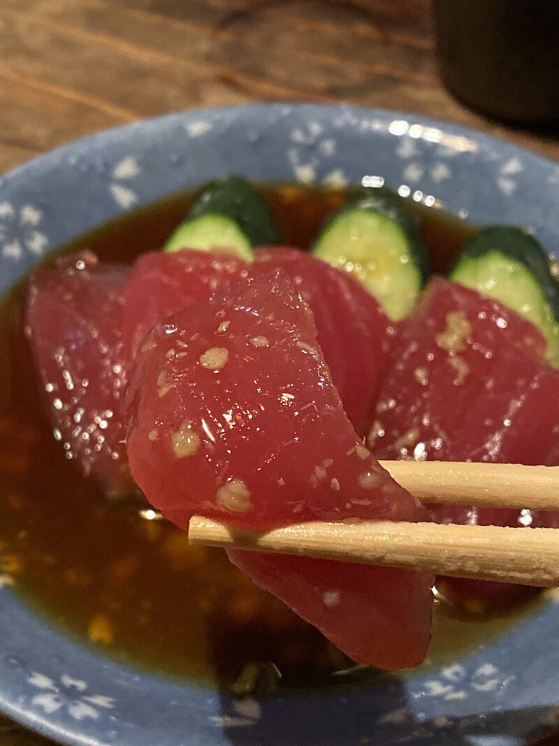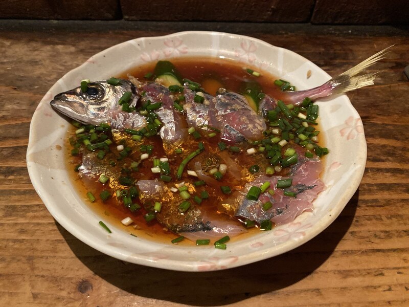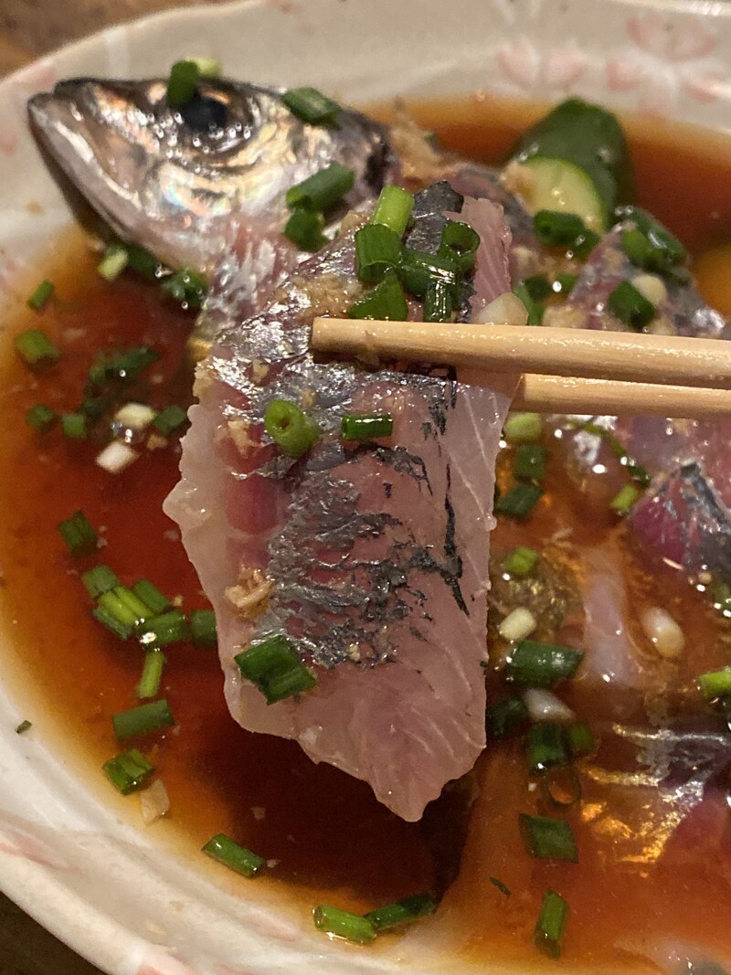 もしここに行くのであれば、絶対に食べてほしいのが名物の「アジの刺身」だ。たっぷりと特製のタレに浸された状態で出される味の刺身は、まさに「のらくろ」だけの唯一無二の美味しさ。最高に新鮮なアジの良さと、店主の類まれなる調理センスによって生まれた最高のもの。