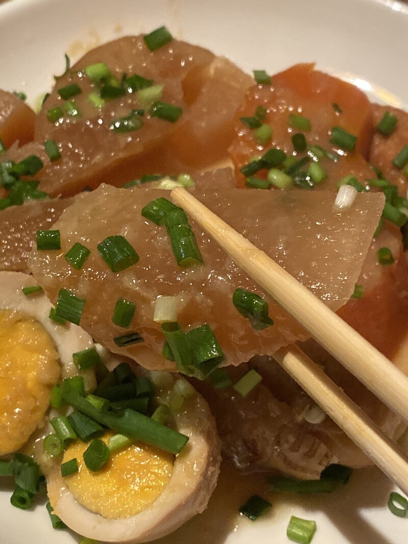最高の青森食材を楽しんだら、家庭料理ともいえるスパゲティサラダ。そして煮物。それらすべてから人のぬくもりを感じる。徹底して良いものを食べてほしいという店主の心意気を感じる。