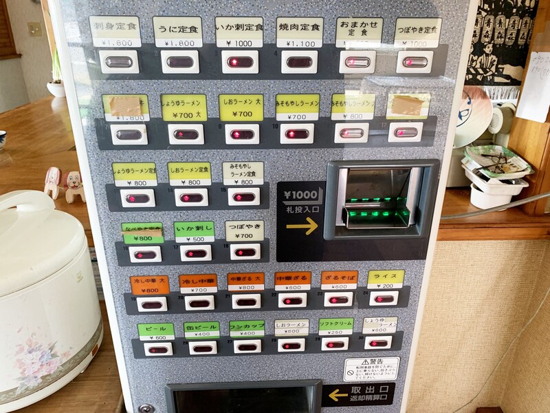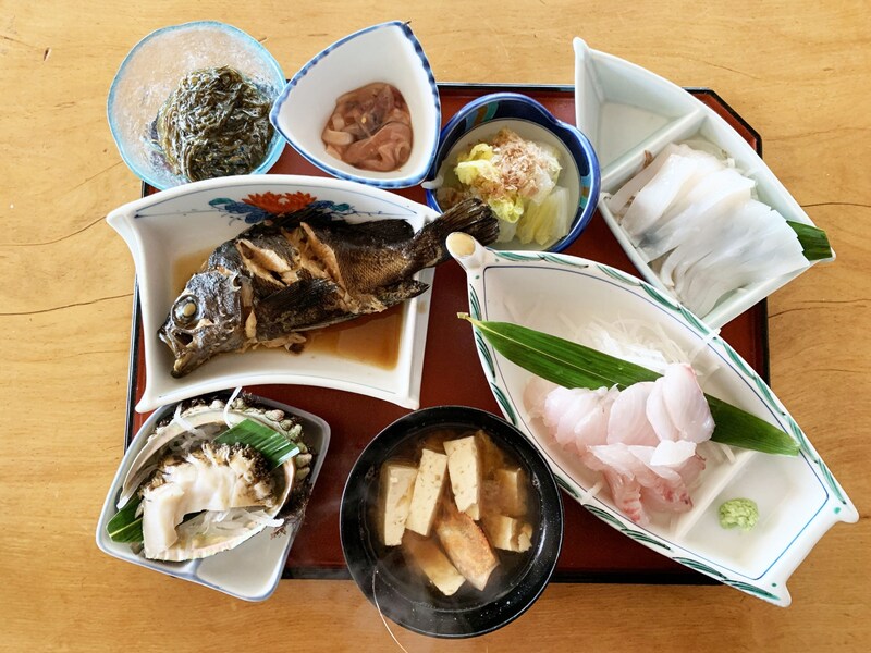 筆者が食べたおまかせ定食は、ご飯、海老のみそ汁、イカ刺し、鮮魚刺身、漬物、魚の煮つけ、あわび、もずく、塩辛という構成。しかもご飯はセルフサービスで食べ放題。徹底的にお客さんの満足を追求している食堂なのである。そして居心地も良く、スマホ充電のためにコンセントも使わせてくれた。とにかく優しさと安さがある最高の食堂だ。