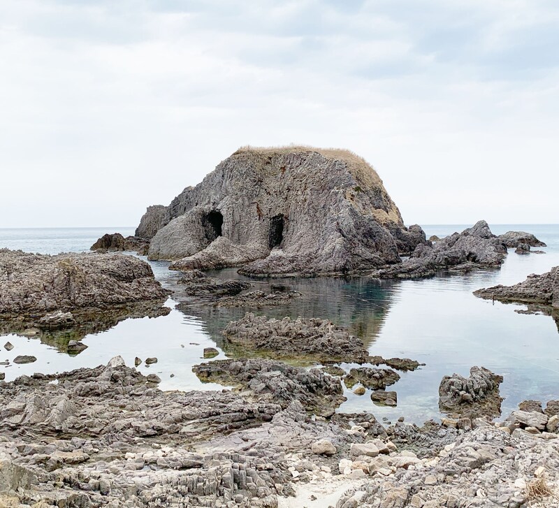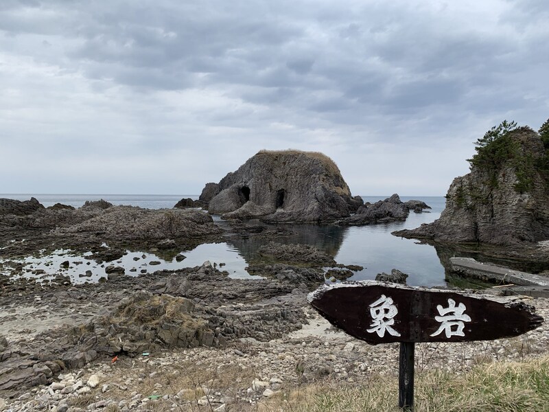 青森県西津軽郡深浦町の沿岸にある象岩。その名のとおり、遠くから見ると象の顔に見える岩のこと。よく見てみると、確かに、象の鼻のように見えるし、洞穴がツノのようにも見える。あまりにものどかで、周囲に何もないが、この周辺は「何もないからこそ自然の壮大さ」を感じられる素晴らしい大地でもある。