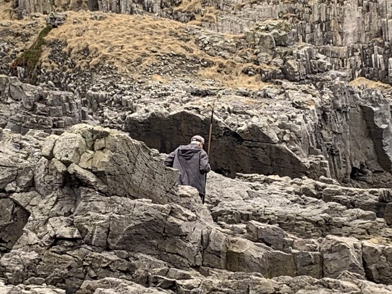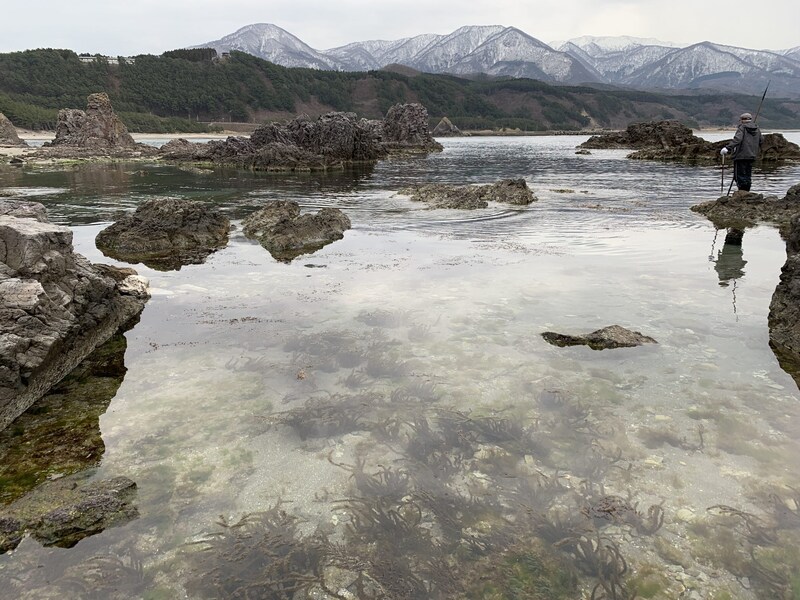 象岩の周囲には、タコが多く棲んでいる。そのため、たまにタコ漁をしている人と出会うことがある。目視で海面をチェックし、タコを見つけたら狙いをさだめてモリで突く。タコが多くいるとはいえ、タコを射止めるのは至難の業だ。