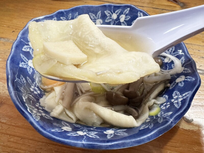 筆者は7:00過ぎにガチ勢とともにタクシーで向かい、運良く行列がなかったため、7:30ごろに入店。そして、瞬時に行列ができた。鉄道でやってきたお客さんたちが一気に並んだのかもしれない。店内に入ると、かなり狭い店内で多くの人たちが海鮮丼を食べていた。ここの名物は「平目漬丼」(1350円)だが、筆者が行ったときはすでに完売。今回は「平目とマグロ漬丼」(1350円)と「せんべい汁」(セット価格200円)をオーダー。