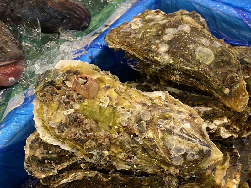 数多くの飲食店や鮮魚店がテナントとして入っており、どれも新鮮で絶品。特に嬉しいのが、鮮魚店で購入した食材をその場で食べられるという点。購入してそのままテーブルフロアまで行き、そこで座って食べることができる。たとえば超新鮮な牡蠣を購入して食べるなど、贅沢なこともできる。