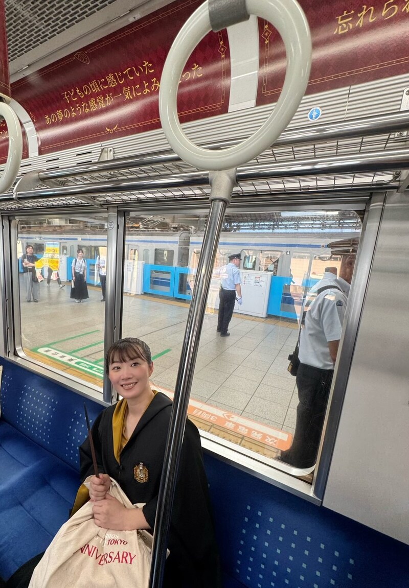 社内も名台詞や、寮デザインの吊り革など、ハリー・ポッターだらけ! 「猫やふくろうがお荷物から飛び出さない様にお気をつけください」など、世界観を感じられる特別アナウンスに思わずニヤリでした。