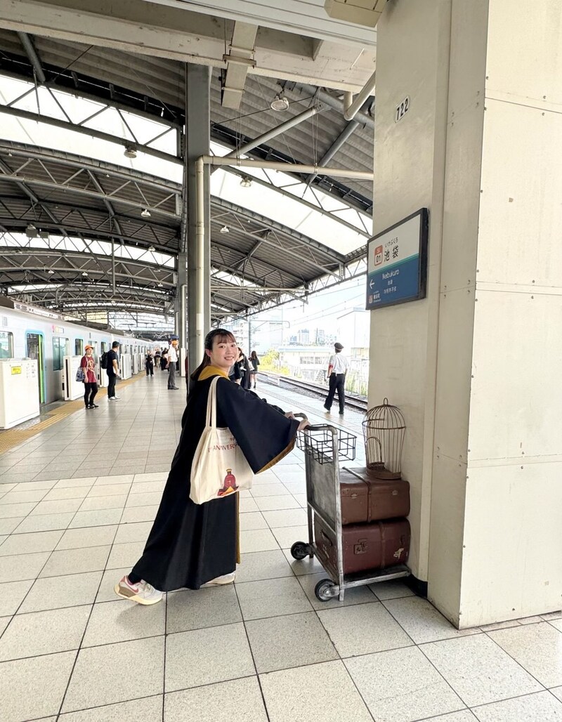 魔法ワールドファンの田名部生来さんと一緒に、このイベントを体験しました! この日限定で、池袋駅に荷物カートが出現!皆さん撮影を楽しみました。