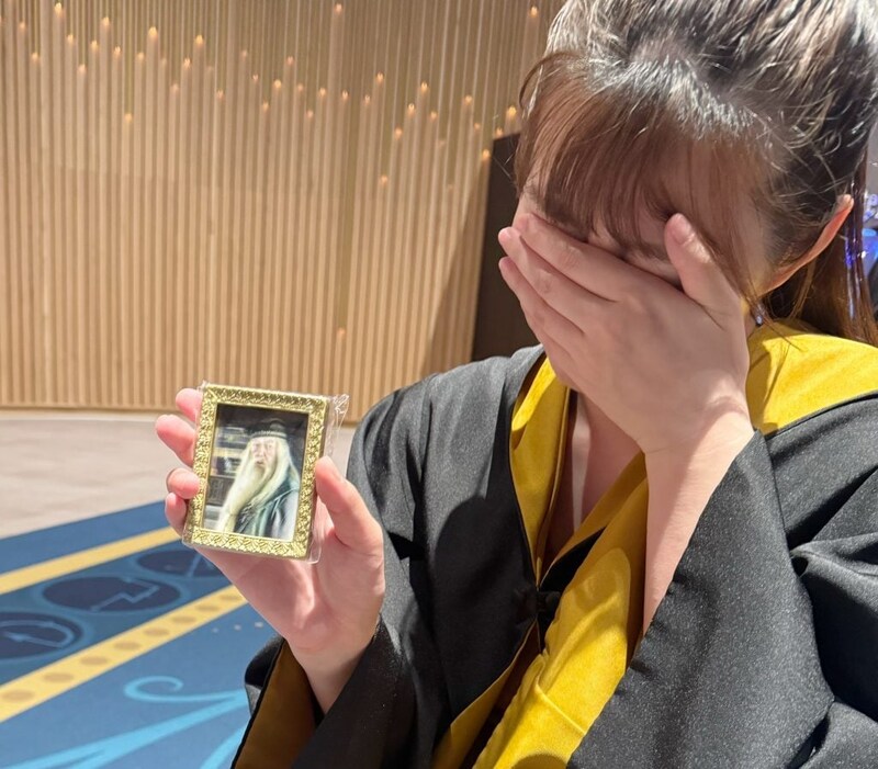 おまけ。ダンブルドア先生のグッズをランダムで引き当て、感激するたなみん。