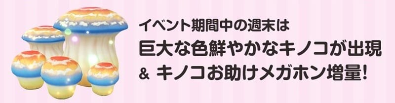 とくに毎週末に出現する「巨大な色鮮やかなキノコ」は1度にたくさん稼げる絶好のチャンスなので覚えておこう。