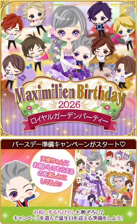 アプリ内では、「Maximilien Birthday 2026~ロイヤルガーデンパーティー~」を開催中です。本イベントでは、物語を読み進めてガーデンptを集めることで、限定アバターを獲得することができます。