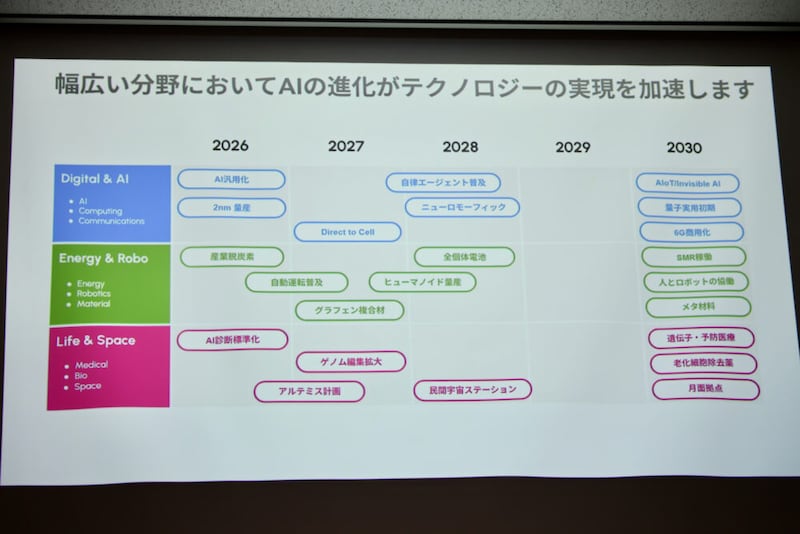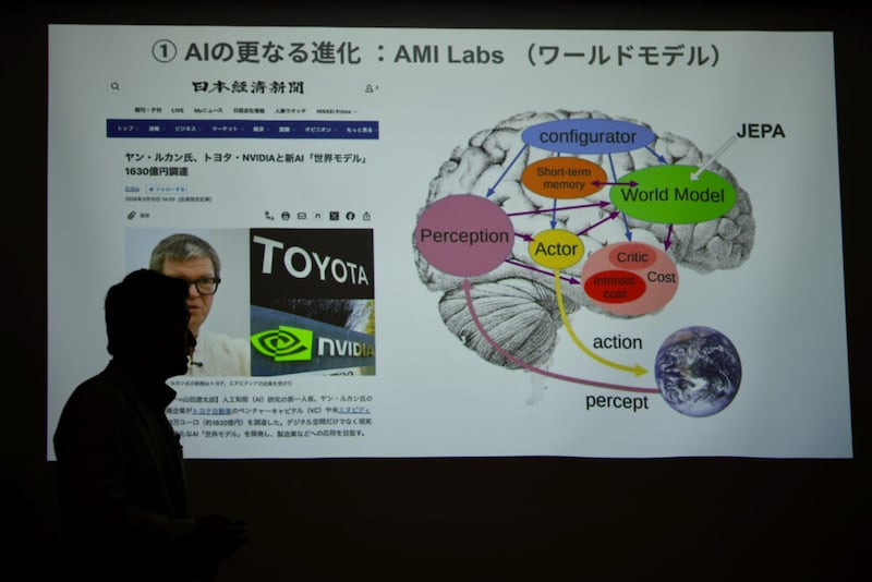 また別の投資先であるAMI Labsという会社は物理AI、フィジカルインテリジェンスを扱う会社。トヨタ、NVIDIA、Samsungも投資しており、会社ができた瞬間に時価総額が5000億円になったという。LLMの次にトレンドになるのではないかと言われている『ワールドモデル』の論文を書いたNY大学のヤン・ルカン氏が創業者なのだそうだ。もうひとつが、IXANA。こちらはこの日の登壇者なので、後ほど。