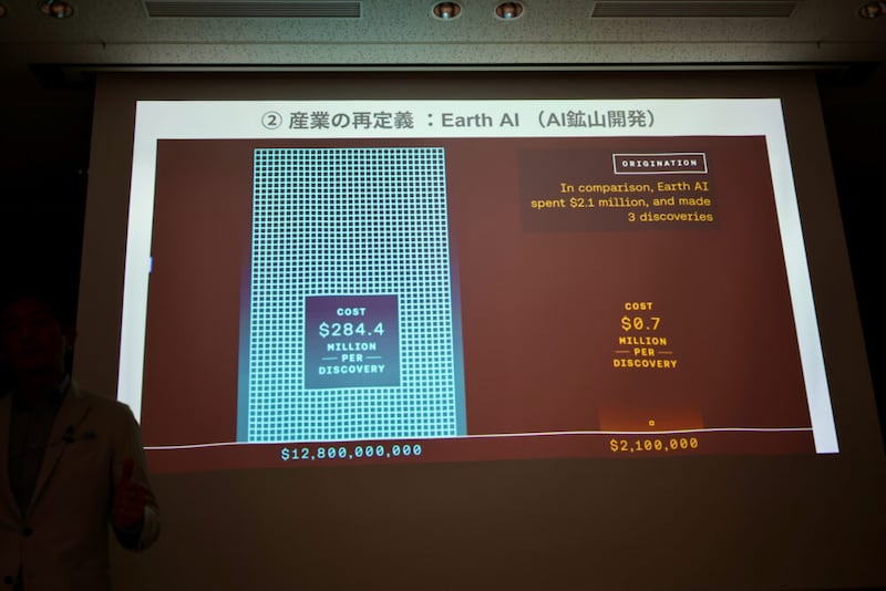 Earth AIは鉱山を開発するスタートアップ。リチウムとかモリブデンとかそういう金属をオーストラリアのような広い国で探す場合、従来の方法だと200回掘って1回、つまり0.5%ぐらいの成功率だった。そこに2億8440万ドル、つまり約400億円を投資するというような世界だった。Earth AIはなんと70万ドル、約1億円の投資で、4回掘って3回、つまり75%の成功率を挙げたのだそうだ。これはたしかに産業構造が変わる。