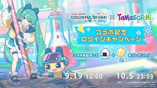 株式会社セガ(本社:東京都品川区、代表取締役 社長執行役員COO:内海州史)と株式会社Colorful Palette(本社:東京都渋谷区、代表取締役社長:近藤裕一郎)は、iOS/Android向けリズム&アドベンチャー『プロジェクトセカイ カラフルステージ! feat. 初音ミク(以下、プロジェクトセカイ)』について、2025年9月19日(金)より[プロセカ×たまごっち]コラボを記念して「みんなたまとも!どり~むガチャ」、[プロセカ×たまごっち]コラボ記念ログインキャンペーンを開催中です。