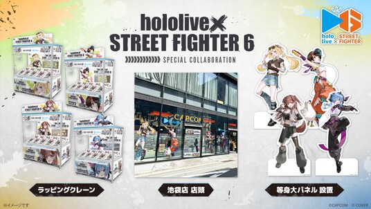 コラボ開始に合わせて、各店舗にて「ストリートファイター6×ホロライブ」のクレーンゲームが登場! さらに「プラサカプコン 池袋店」ではスペシャルコラボ店舗として特別装飾も展開。さらに等身大パネルも設置いたします。