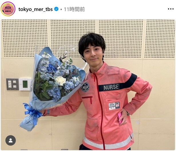 この日、公式Instagramは「クランクアップ写真公開!常盤拓役 高杉真宙さん」というコメントとともに、さわやかなブルーの花束を片手にクランクアップを迎えた高杉の写真を公開した。