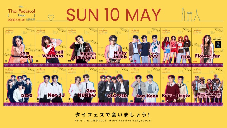 さらに代々木公園内で行われるタイフェスティバルに加え、5月5日(火・祝)から11日(月)まで代官山UNiT、渋谷eggman、ZEPP DIVERCITY TOKYO、北とぴあさくらホールで様々なファンミーティングや音楽ライブが多数開催される。
