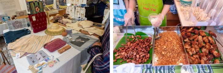 タイフェスティバルでは、様々なタイ料理や物産品を販売する。タイの生鮮果物や野菜、お米、カレーペースト、おなじみの調味料、家庭で簡単に、美味しいタイ料理が作れる食材などが揃う。またタイティー、フルーツスムージー、クラフトビールなどのドリンクを味わったり、最新のファッションや服、タイシルクで作った現代風の服やタイパンツ、個性的なムエタイパンツ、手工芸品を買い物したり、ゆっくり会場を回ってお気に入りを見つけてみよう。