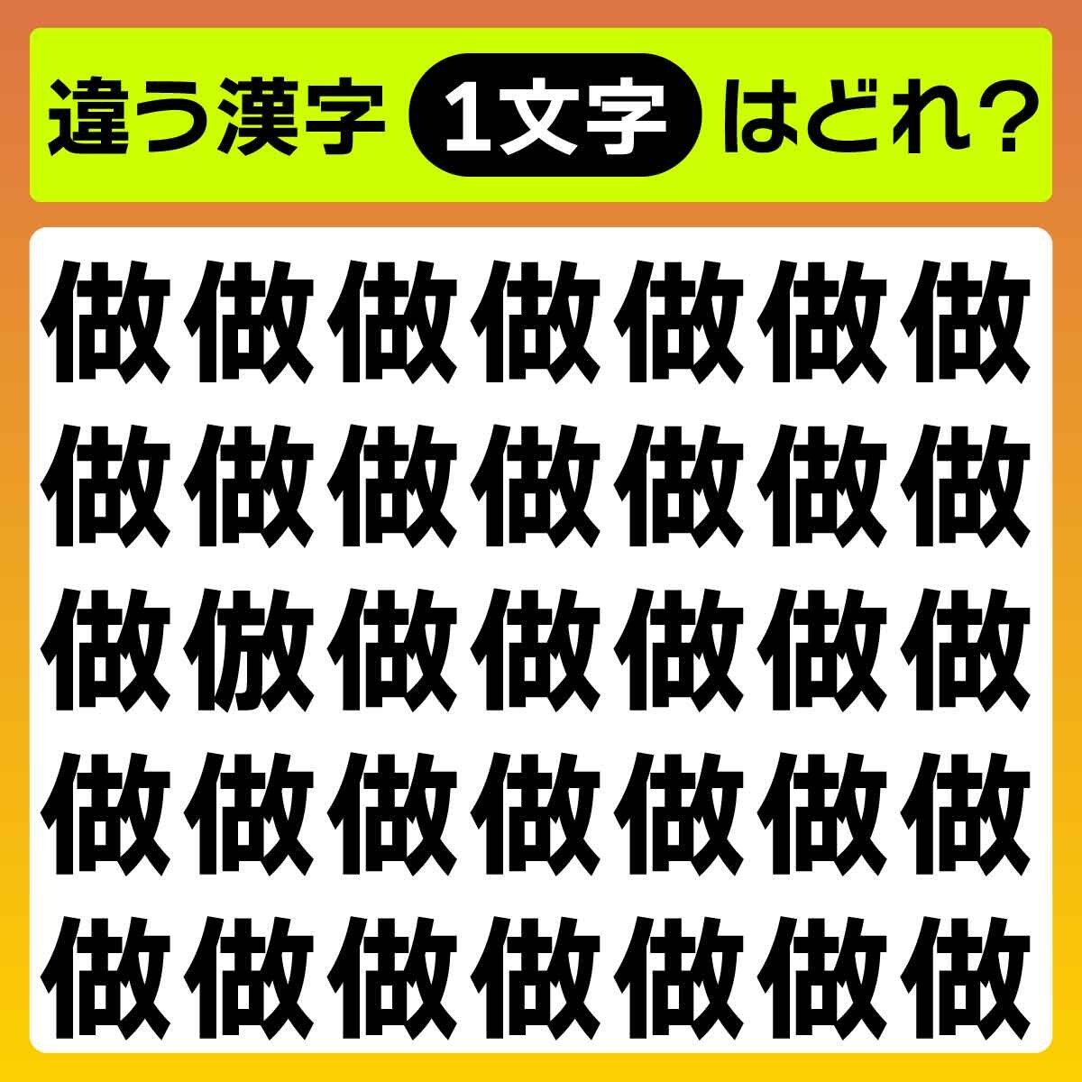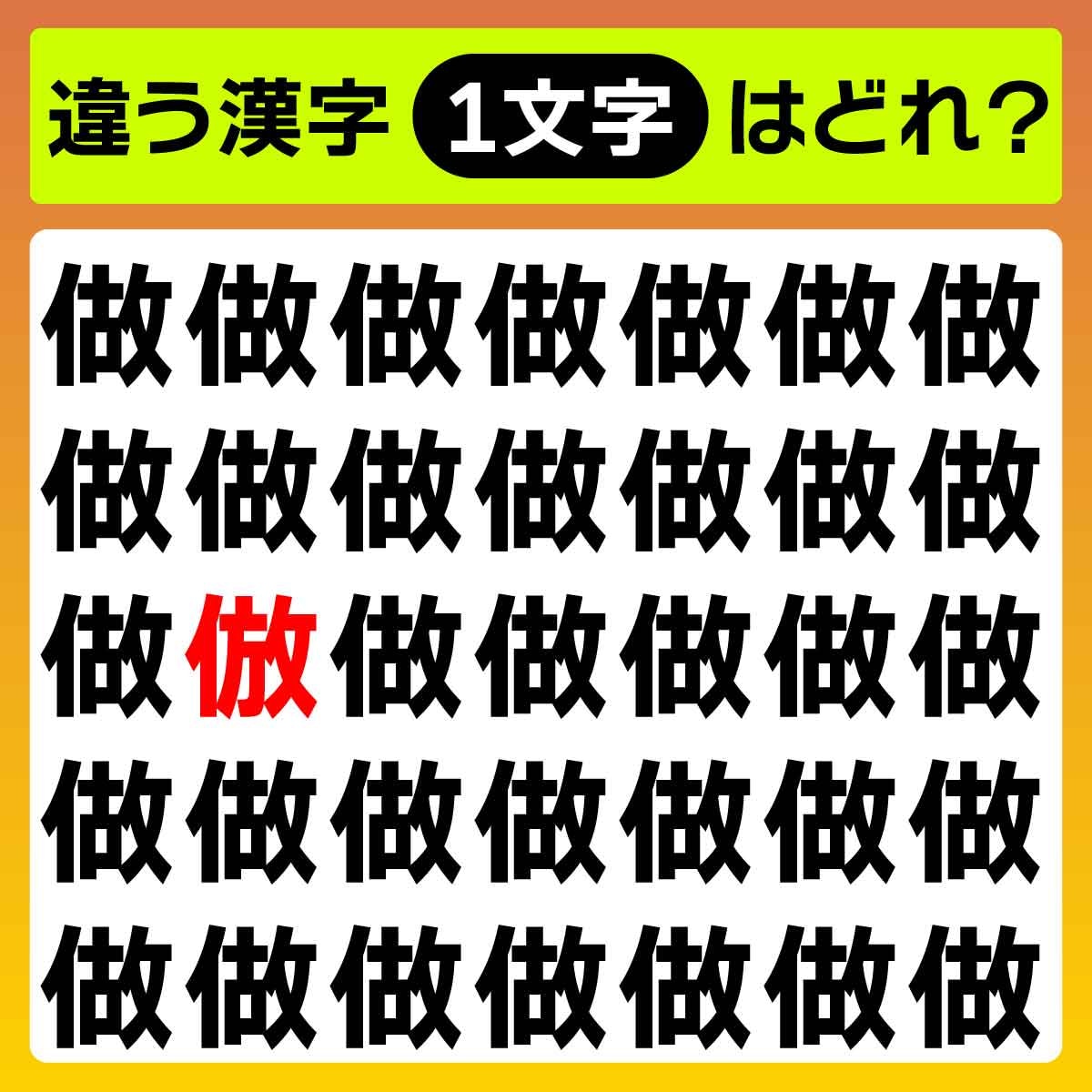 違う漢字は、上から3列目、左から2番目の文字でした!