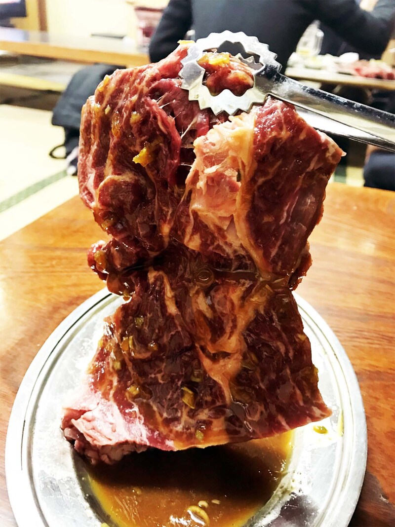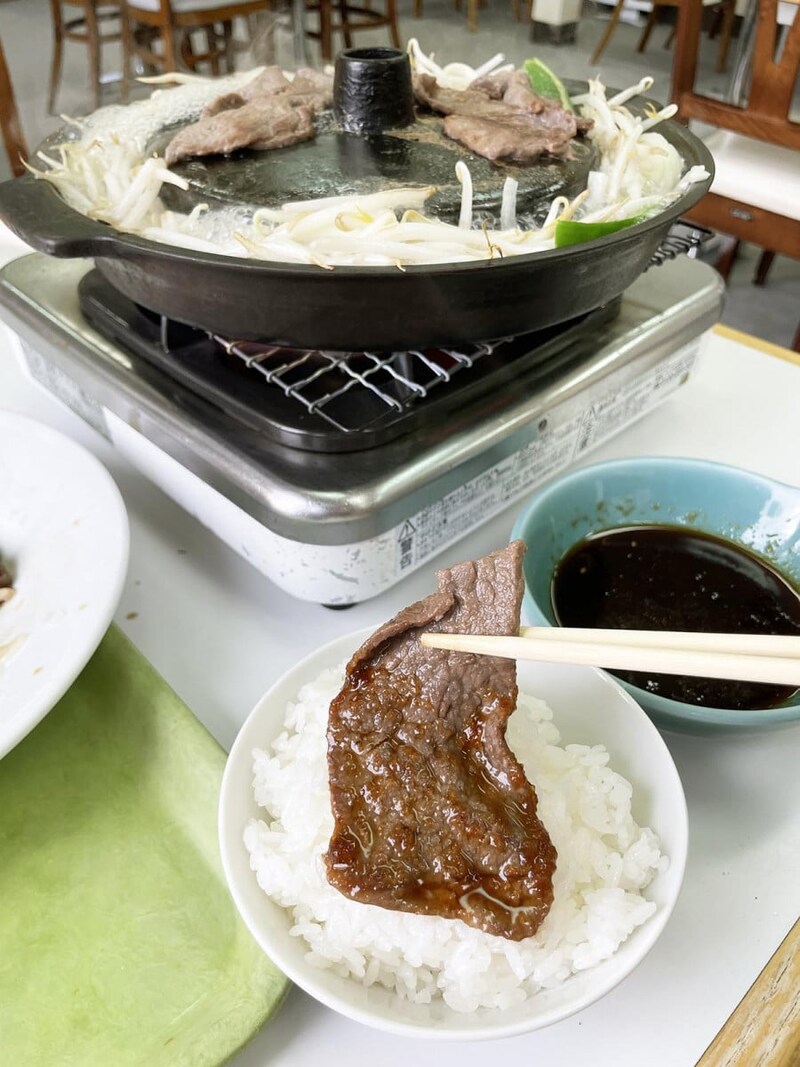 ここの焼肉はどれも豪快で厚切り、そしてワイルド。アパート的な雰囲気なのか、厚切りでダイナミックな焼肉をタレで食べる。ライスもバッチリマッチする焼肉だが、ここは牛肉ミンチがたっぷりとまぶされた牛トロライスを食べておきたい。