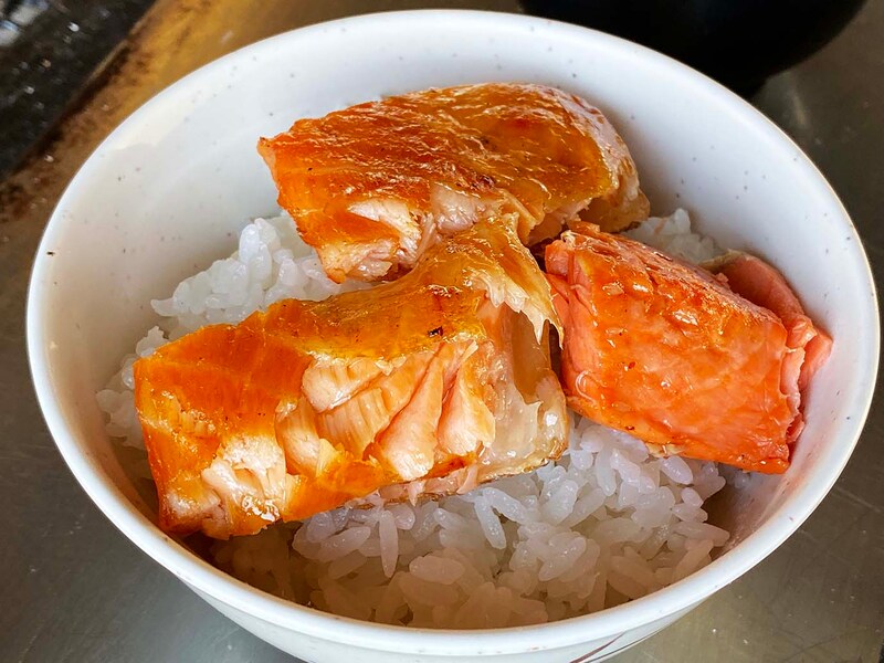 焼きあがってガッツリとライスとともに食べれば、「今まで食べてきたシャケとは何だったのか」と思えるほどの旨味に感動を覚える。溢れ出る脂と、そこに含まれる旨味の質が高いのだと感じた。つまり食材としてレベルが高い。あまりにもウマすぎるので、鮭番屋ではなく鮭番長と呼びたいほどである。