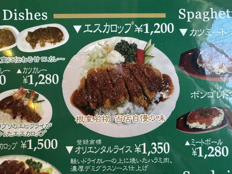 エスカロップは、デミグラスソースがたっぷりとかけられたカツがバターライスにのっているビジュアル。ここまでは、東京で食べてきたエスカロップと構成的には同じ。