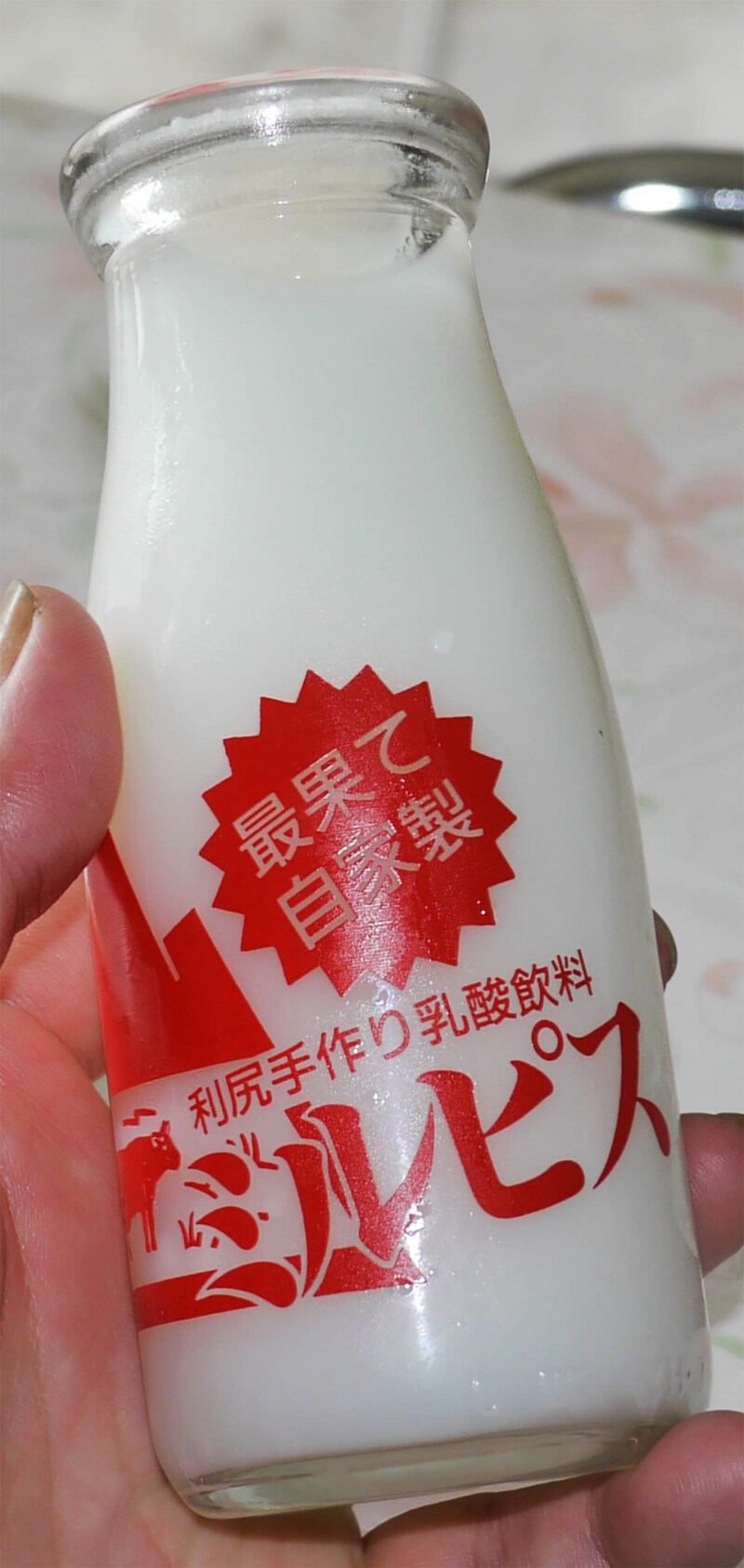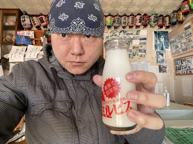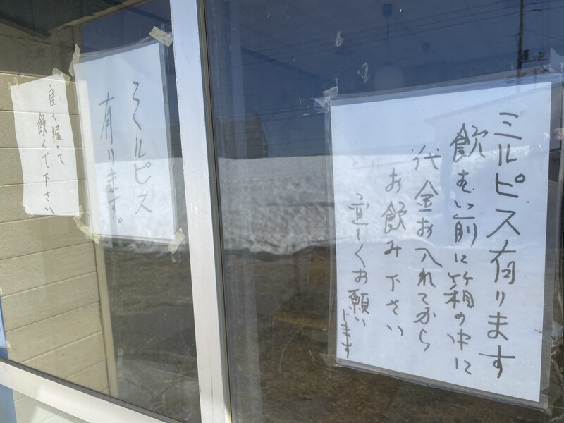おばちゃんが接客してくれることもあるが、誰もいないこともあるので、そんなときはミルピスを飲んで代金を置いていけばOKとのこと。瓶をお土産にしたいときはそのぶん多めに払う。
