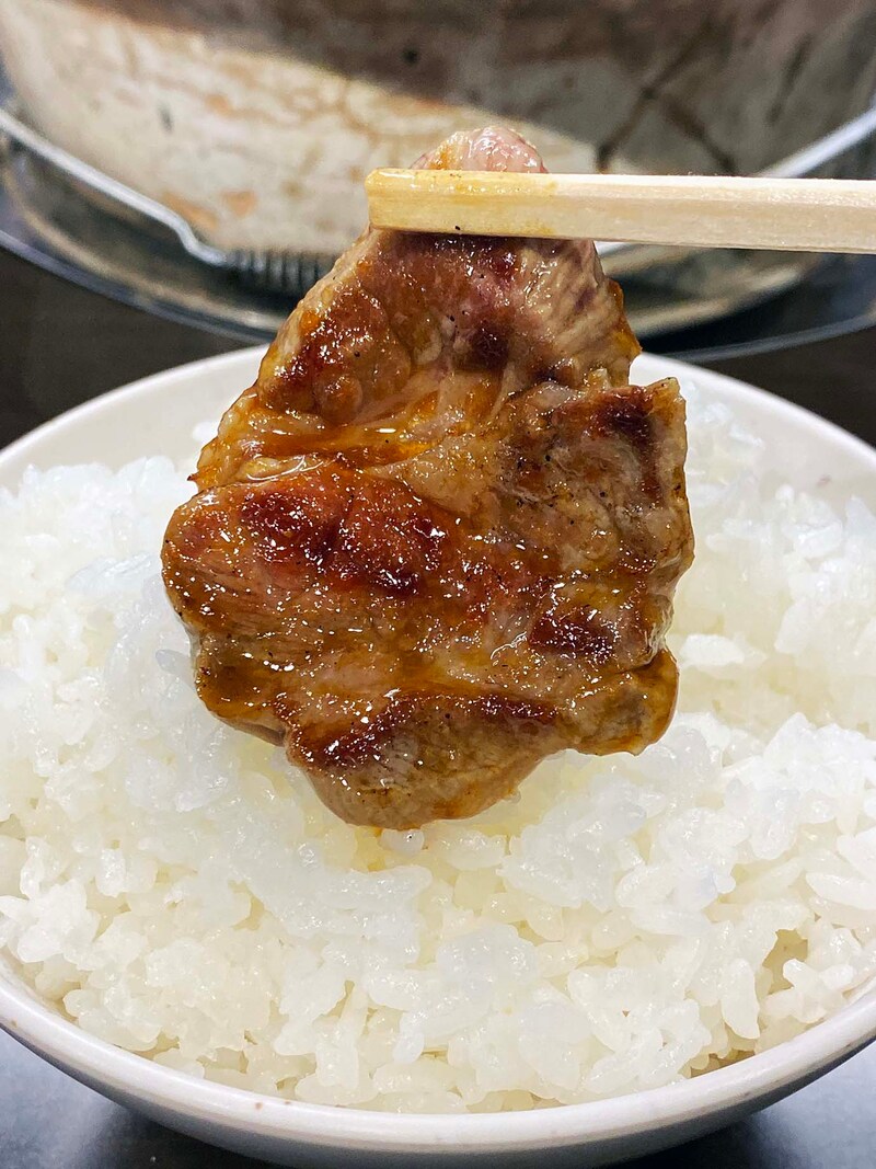 その味は……、うまい! うまい! うまい! えぞ鹿はいっさいの臭みナシ!! ほどよい柔らかさで、ほどよい噛み応え、そして旨味濃厚ジューシー。そんなえぞ鹿を特製タレに浸し、ライスにのってけて食べる。控えめに言って最高。最高オブ最高。うまい!
