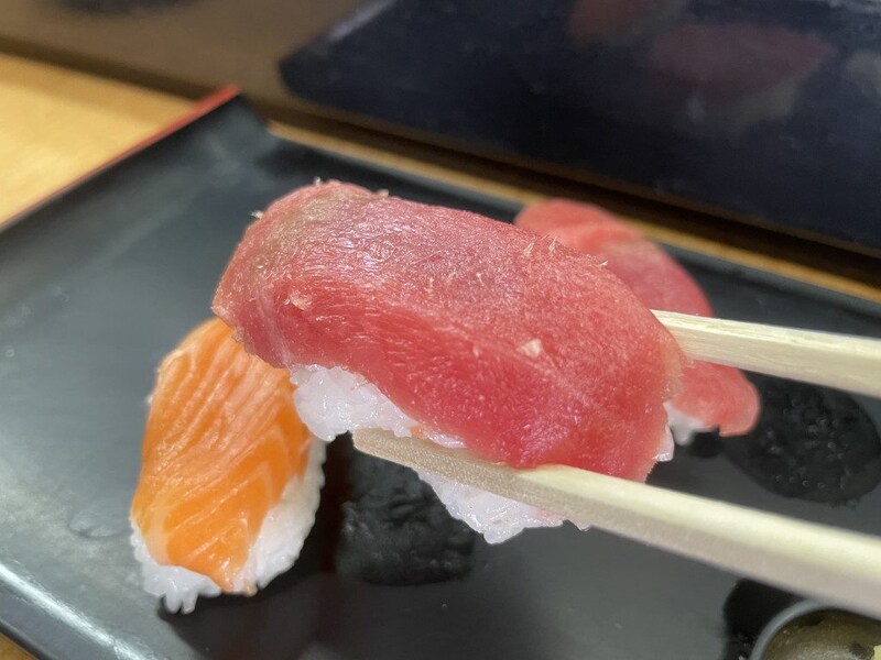 寿司はひとつひとつ丁寧に握られており、けっして安さを感じない。むしろ高額な寿司と同レベルといっても過言ではない美味しさ。まず寿司ネタのツヤを見てほしい。実際に食べるとトロリとした食感とともに旨味が広がる秀逸なるもの。