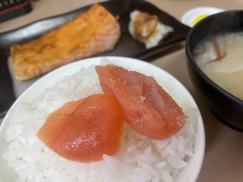 たっぷり、思った以上にガッツリと脂がのったサーモンハラスはビジュの時点で「これ絶対ウマイやつ」が確定。超絶ツヤツヤテカテカとした表面が甘美。しかもかなりの厚切りで、ほどよい塩味と厚切りのサーモンハラスをライスとともに食べれば至高。