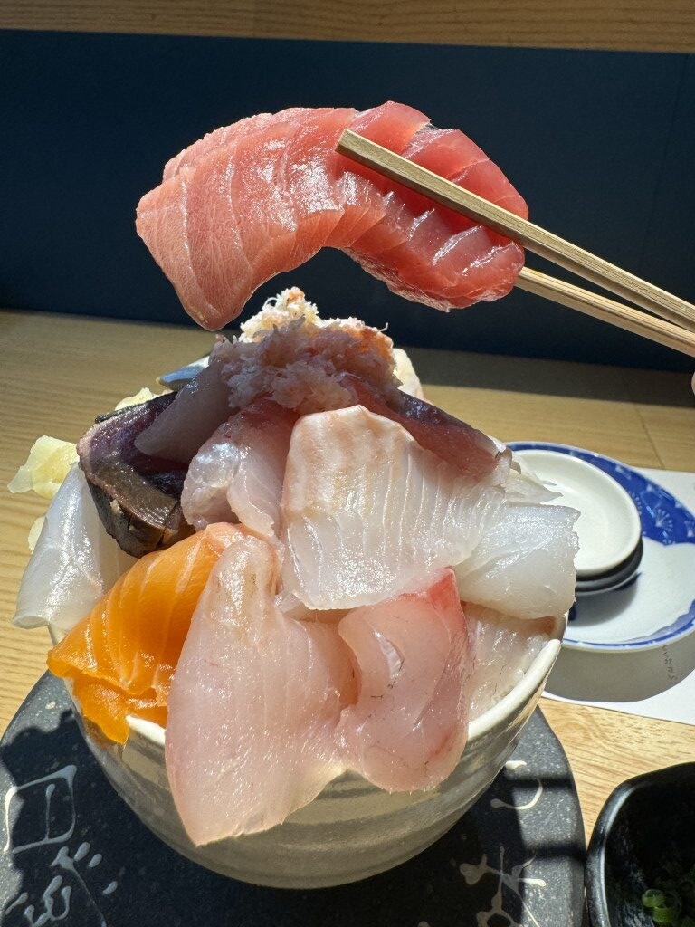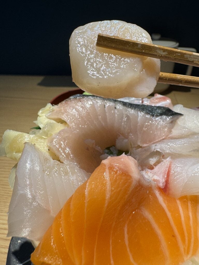 観光地の海鮮丼を食べると、値段だけ高くて内容がガッカリなものが多い印象があるが、シハチ鮮魚店は間違いなく良心的であり優良店。客の感度を第一に考えた「盛り」であり、かなり優しい。とにかく魚介類が極厚。薄切りにしてコスト削減などしていない。ケチケチしていない。厚いほうがおいしい魚介はしっかり厚く切ってあるのも好感が持てる。
