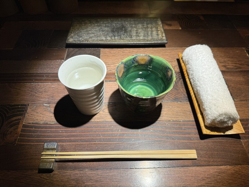 ここは居酒屋なのだが、お通しのメンマと餃子が極めて美味。まずメンマで甘味ある薫りを楽しみつつ、ドリンクを飲んで餃子が焼きあがるのを待つ。餃子はかなりパリパリに焼かれていて、ザクバリッとドライな食感を楽しみつつ、旨味エキスのあふれを楽しむ。