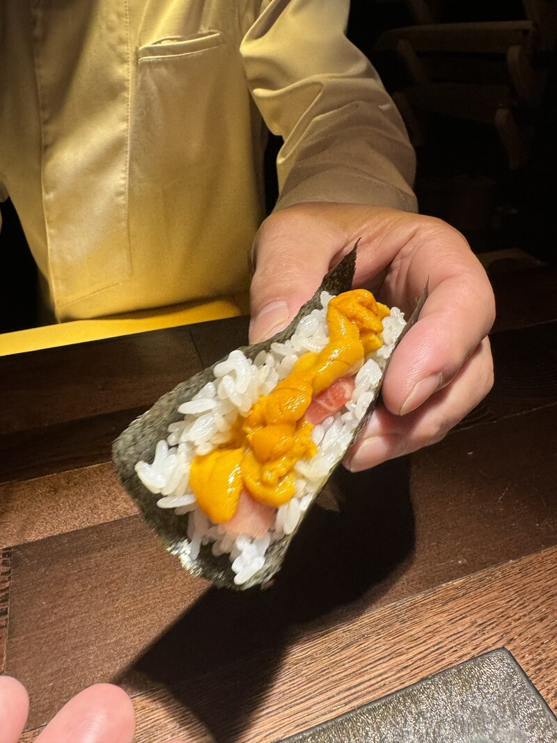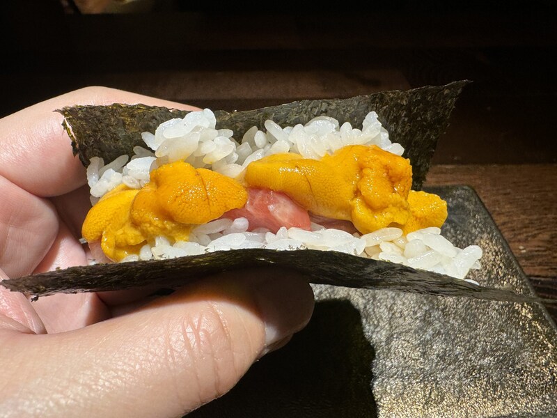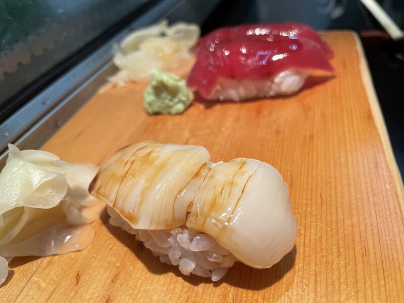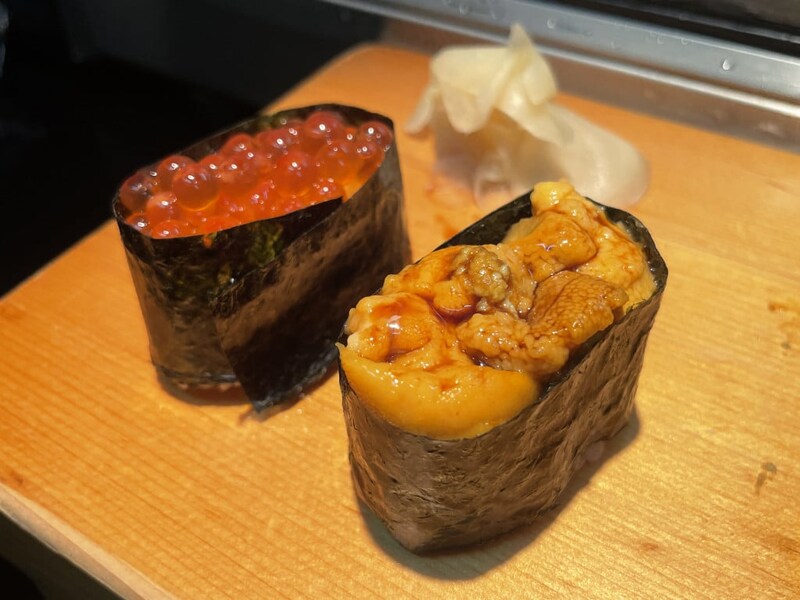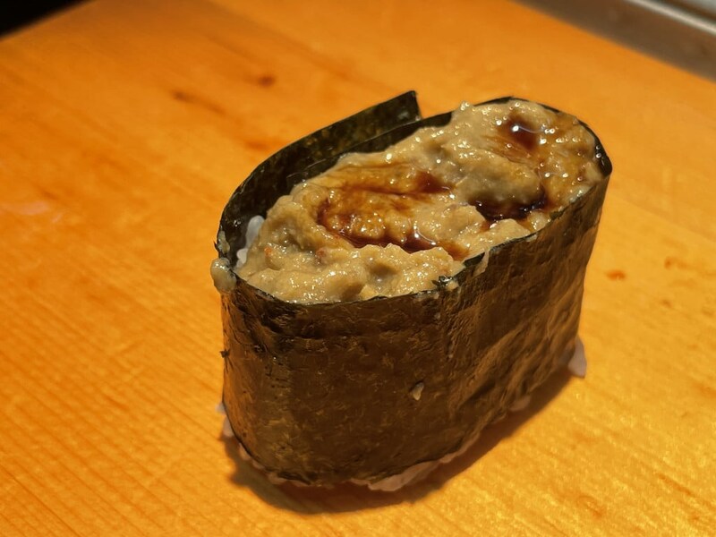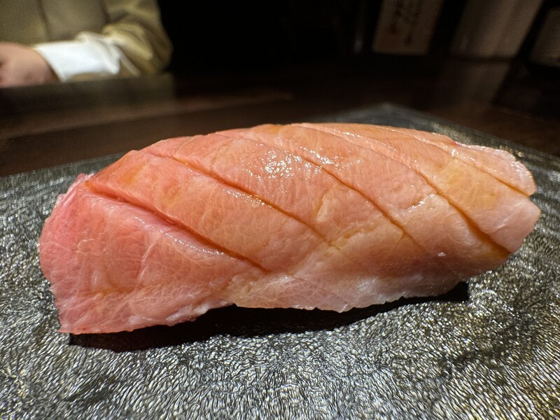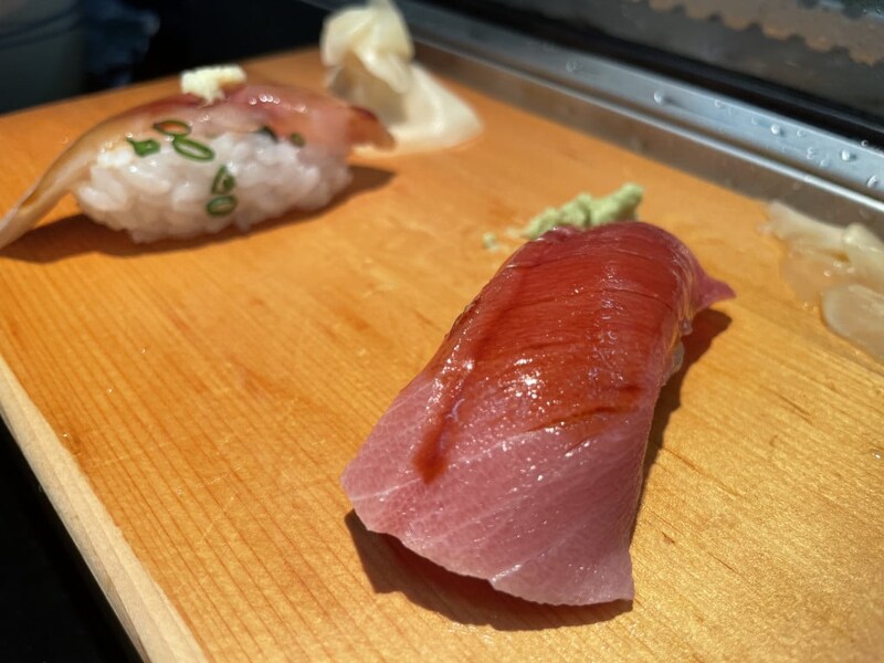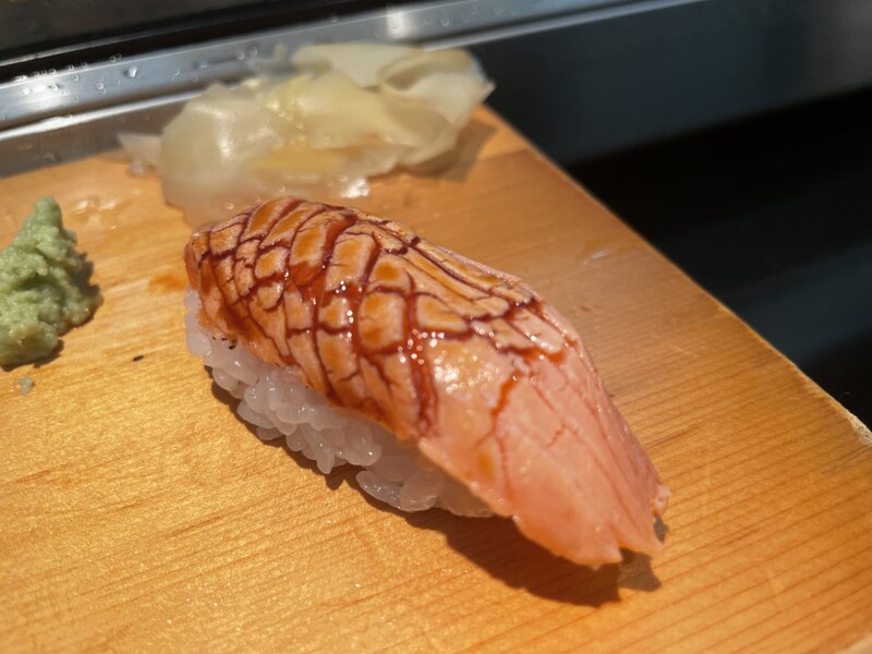 今回は「まぐろ」「鮭」「鮭背脂にぎり」「鮭ハラス炙り」「発酵手造りバター巻き」などをオーダー。どれも全部絶品なのでどれが一番とは決めにくいが、まぐろの「とろける感」は極まっていて最高。上質すぎる。鮭のバリエーションが多いのも嬉しい。「鮭」「鮭背脂にぎり」「鮭ハラス炙り」は鮭をとことん楽しめる組み合わせ。