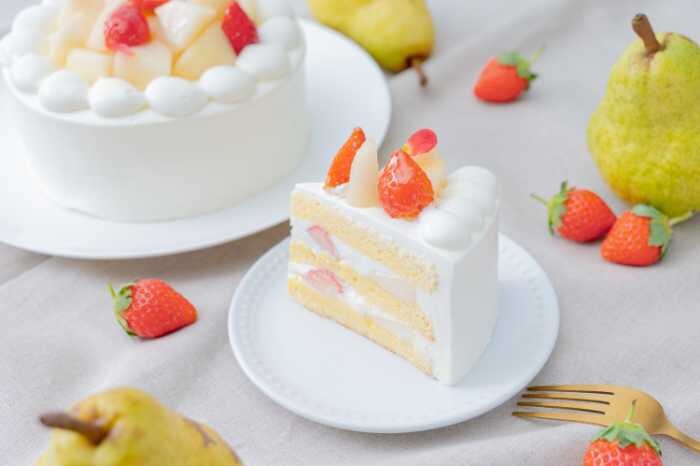 ピネードの新作は、山形県産ラ・フランスと苺のマリアージュをテーマにした「苺とラ・フランスのタルト」(680円)と「苺とラ・フランスのショートケーキ」(720円)。