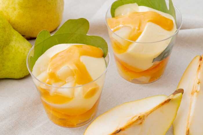 人気の「ラ・フランスのキャラメルムース」(550円)は、ふんわりとしたバニラムースにカラメルゼリーを合わせ、シナモンでマリネした果肉を忍ばせた上品な味わい。