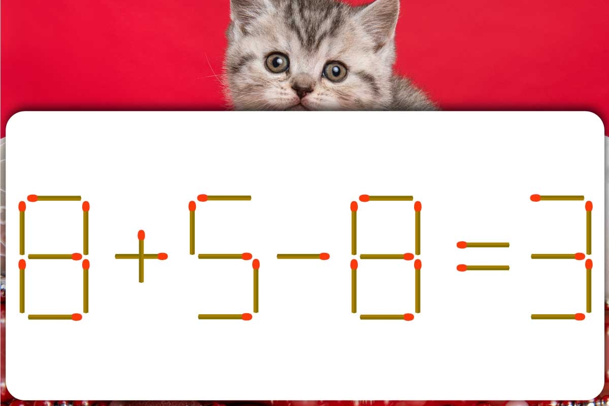 「5」のマッチ棒を1本移動させて「3」を作り、「8+3-8=3」にする。※解答は複数ある場合があります。