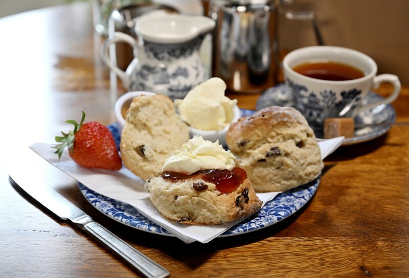 「ティ・フント・イル・ボントティールーム」の「クリームティーセット(スコーン<サルタナレーズン>2個、ジャム、クロテッドクリーム、紅茶)」(1人前/2,500円)ほか ※混雑時は整理券の配布や席の利用時間を設ける場合あり、9階 催場にて販売