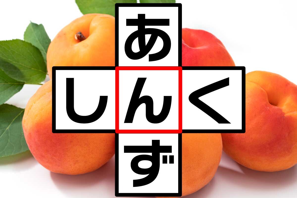 【問題】空欄に入るひらがなは? 【ヒント】タテ:収穫時期は6~7月。英語で「Apricot」と呼ばれることもあるこの果物は?ヨコ:台所にある流しの水槽を言い換えてみてください♪