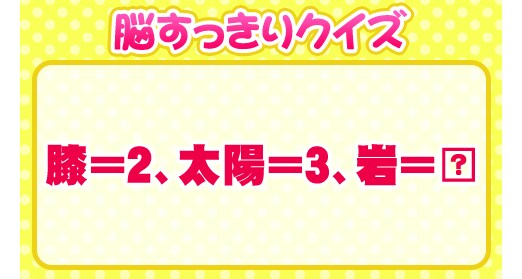 【答】「6」。膝は英語でニー、太陽はサン、岩はロックで6です。