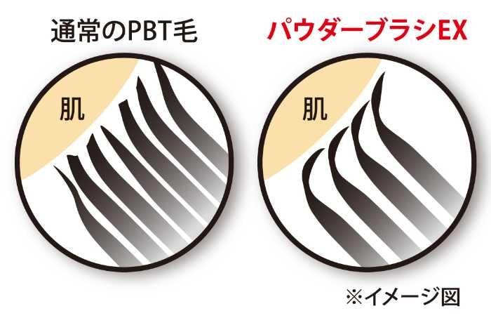 毛にはPBT(ポリブチレンテレフタレート)の極細人工毛を採用。毛1本1本に「くびれ」を施し、パウダーをしっかり含みながらふんわりと肌にのせます。