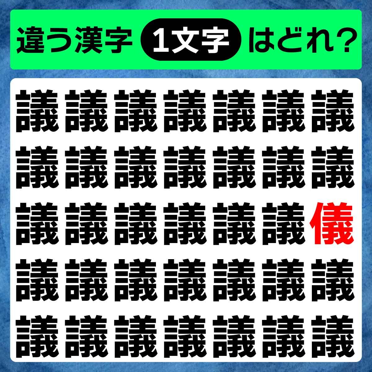 違う漢字は、上から3列目、1番右の文字でした!