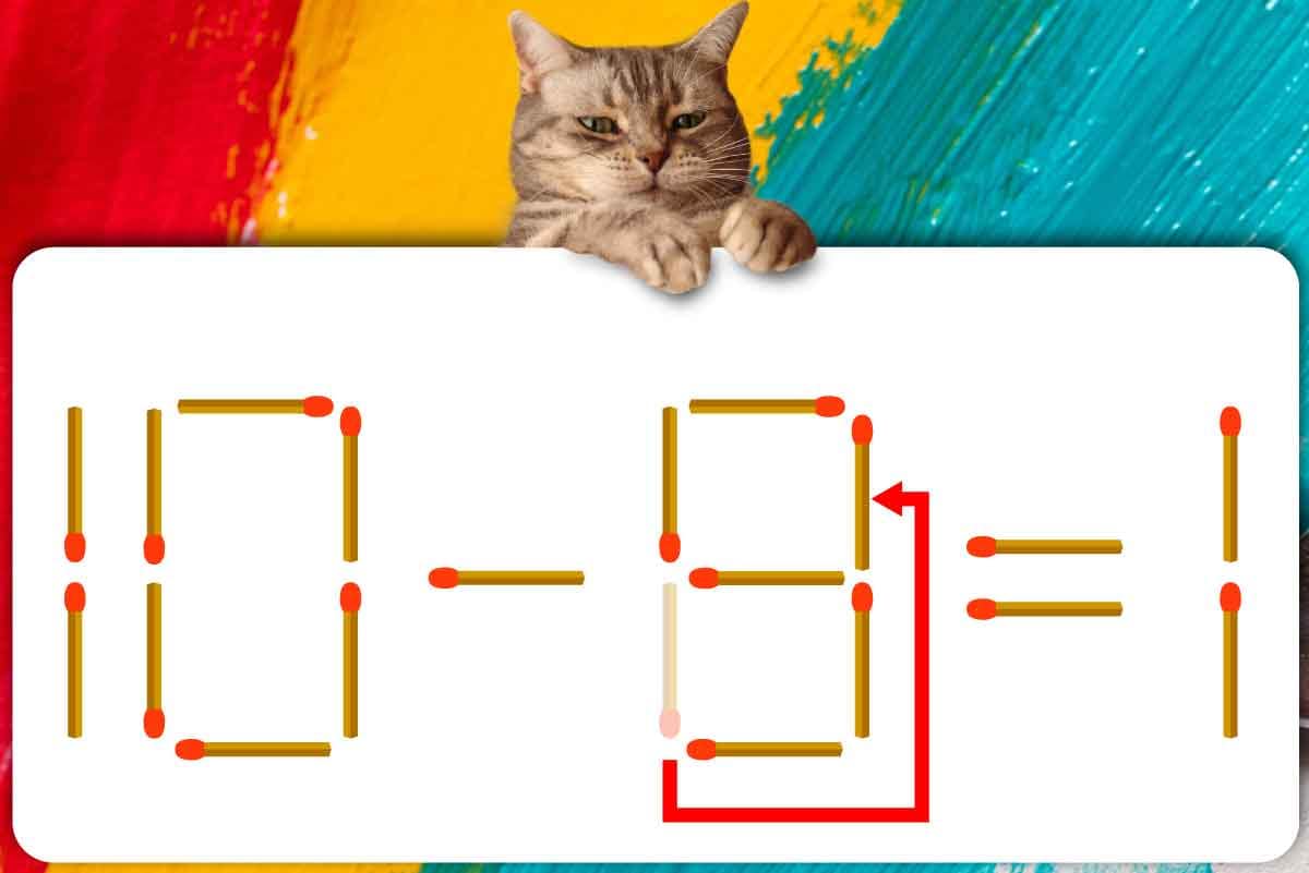 「6」のマッチ棒を1本移動させて「9」を作り、「10-9=1」にする。※解答は複数ある場合があります。