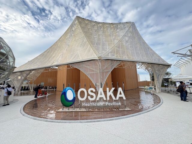 会場となった大阪ヘルスケアパビリオンの「リボーンステージ」には、吉村洋文大阪府知事、横山英幸大阪市長、大阪ヘルスケアパビリオンの西澤良記館長が登壇。さらに、ミャクミャクやマスコットキャラクター・もずやんも登場し、会場を大いに盛り上げました。
