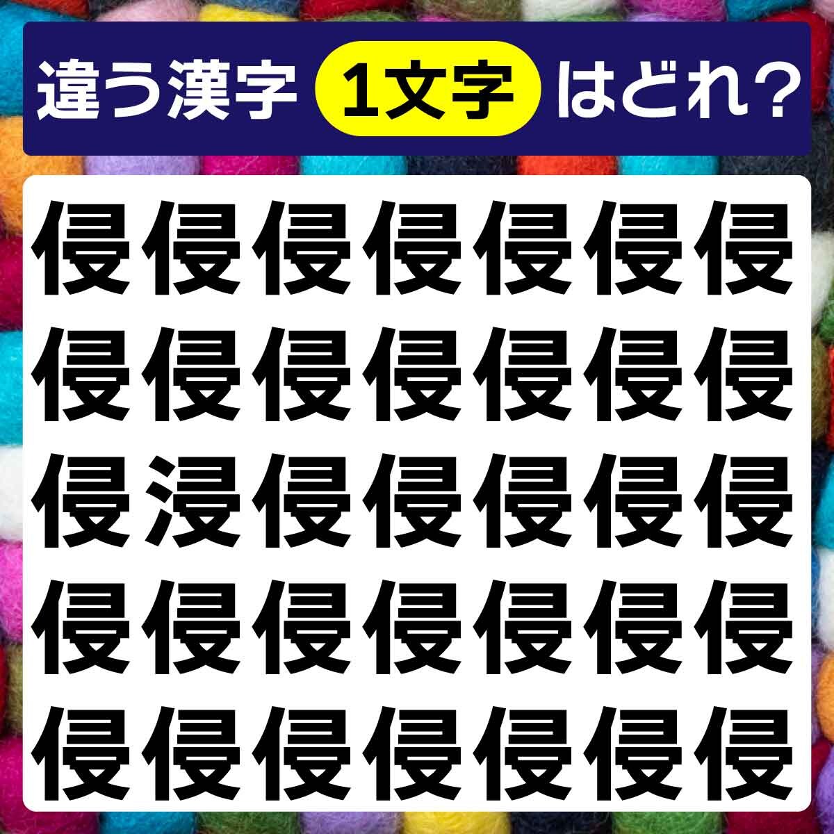 毎日配信中「毎日脳トレ」の時間です! 本日のクイズは「漢字のまちがい探し」に挑戦♪ 同じ漢字が並んでいるように見えますが、実は1つだけ違う漢字が……。よ~く探してみてください!