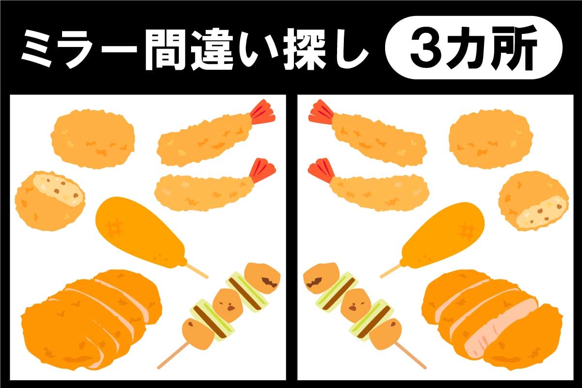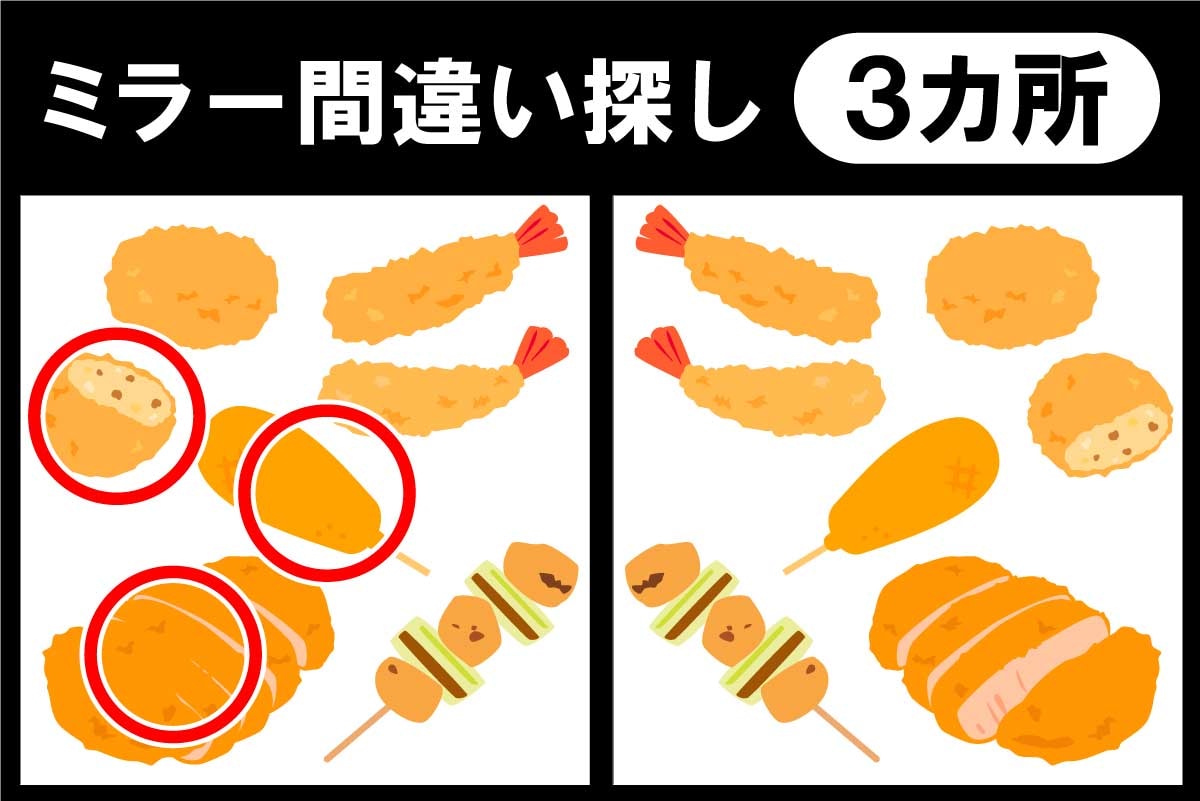 3カ所の違いは、1.アメリカンドッグの大きさ、2.コロッケの向き、3.とんかつの数