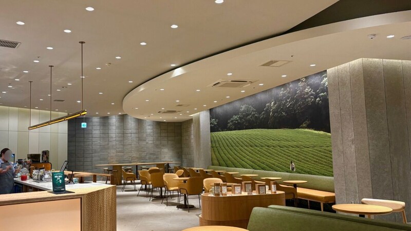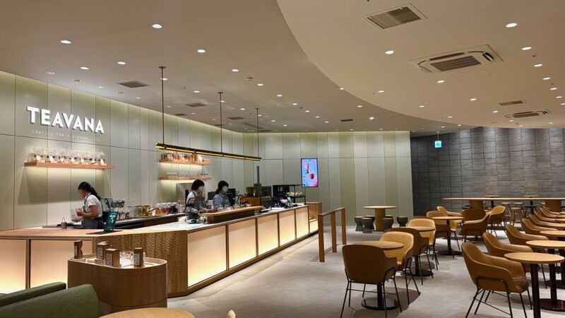 今回オープンした店舗は、約100坪・全96席という広々とした空間で、全国の「スターバックス ティー&カフェ」の中でも最大級の広さを誇ります。ティーの華やかな味わいに合わせ、店内インテリアからスタッフのコスチュームにいたるまで“黒”を使用せず、明るく開放感のある雰囲気に仕上げられています。