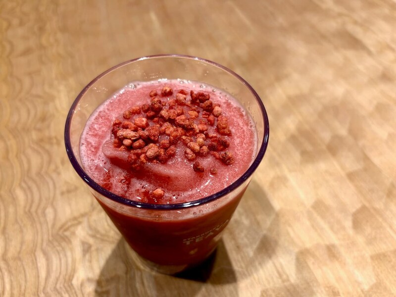ティーの味わいをしっかりと感じられ、ハーブやストロベリーの果肉、生クリームの層が重なり合って、甘酸っぱく爽やかな余韻が広がります。ストローを刺す位置を変えると、味の印象が少しずつ変わっていくのも楽しく、最後まで飽きずに楽しめました。