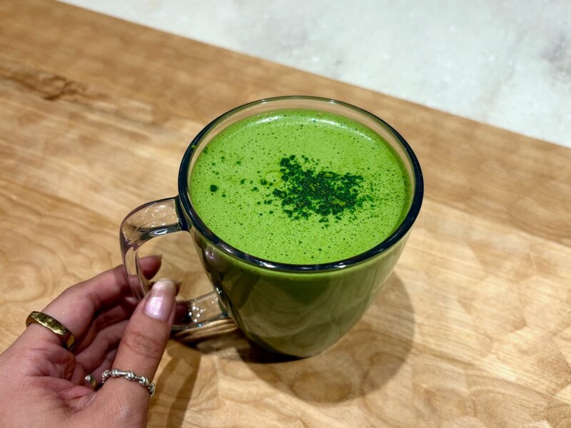 次にいただいたのは「ティー ラテ」から「和三蜜 抹茶 ティー ラテ」。抹茶とミルクを一緒に温めて作られており、ふわふわのミルクフォームも抹茶味になっています。