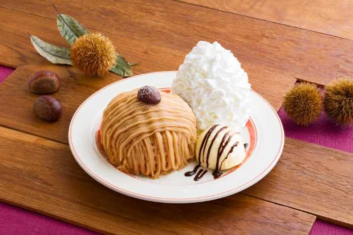 同期間中は、ハロウィンパンケーキのほかにも、秋の味覚を堪能できる「モンブランパンケーキ」(2,150円/税込2,365円)や「マロンロコ・モコ」(1,580円/税込1,738円)も販売中。