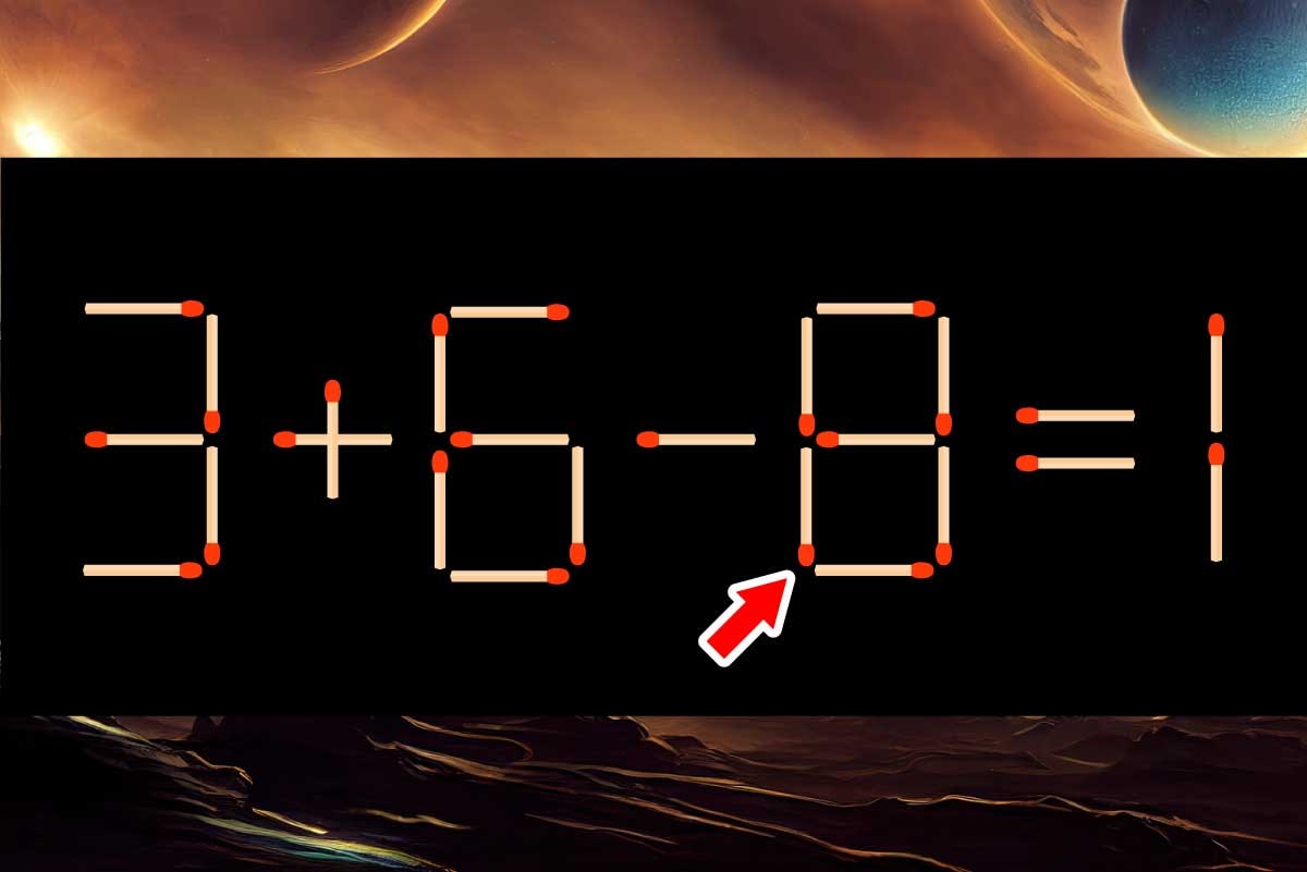「+」の縦マッチ棒を1本、「9」に移動させて「8」を作る。