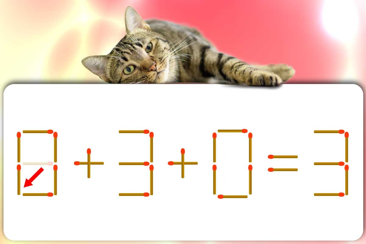 「9」のマッチ棒を1本移動させて「0」を作り、「0+3+0=3」にする。※解答は複数ある場合があります。