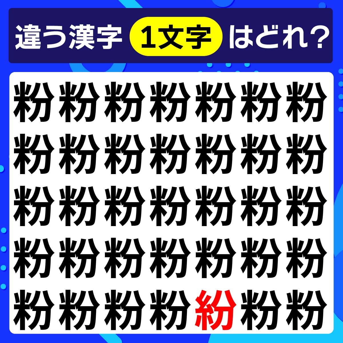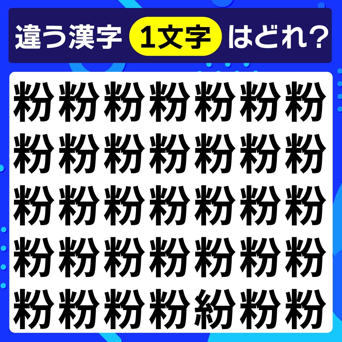 違う漢字は、一番下の列、右から3番目の文字でした!