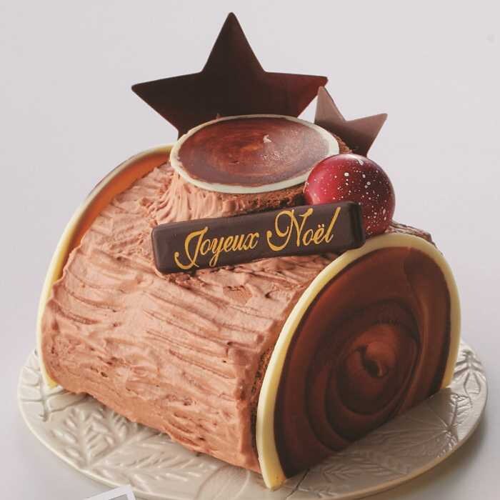 〈ショコラトリー&バー ロンポワン〉絵本のビッシュ・ド・ノエル(約9.5×9×高さ9cm)3,402円や〈パティスリーショコラトリーシャンドワゾー〉ピスターシュフリュイルージュ(約8×11×高さ5.3cm)2,501円など。